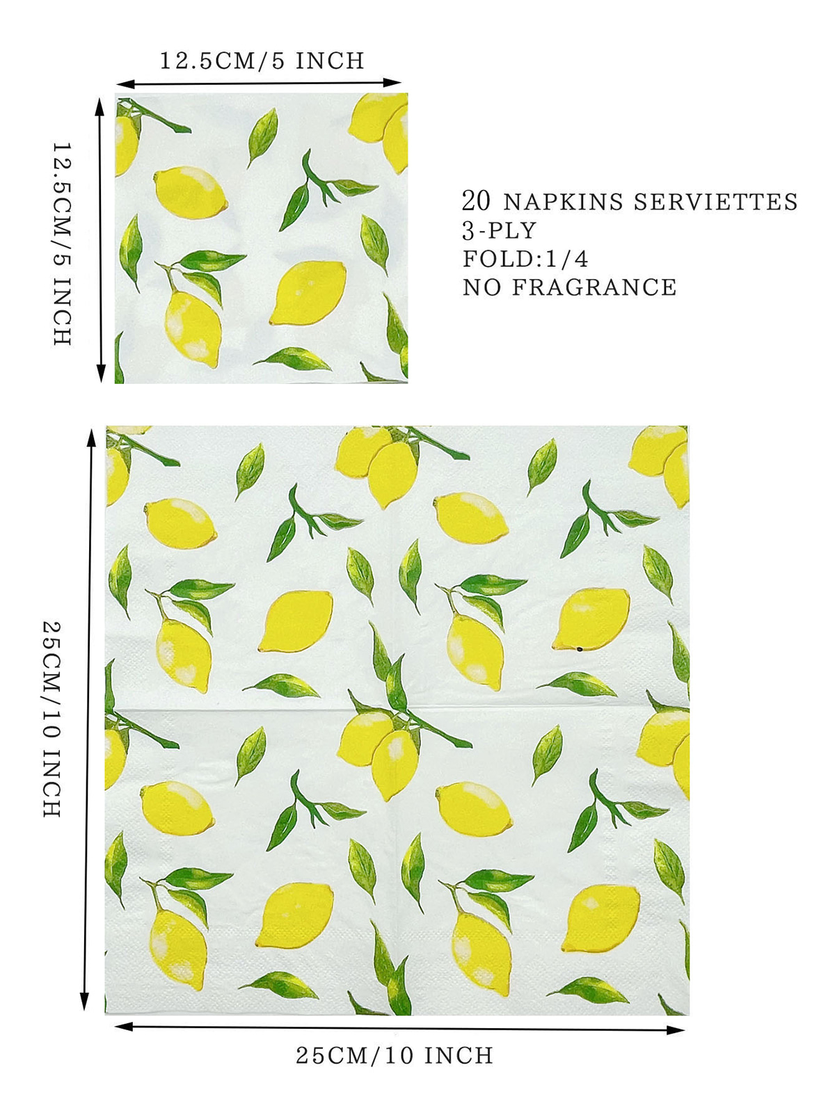 Tämä kertakäyttöinen Lemon Cocktail -juomatulostuspaperilautasliina, jälkiruokalautasliina syntymäpäiväjuhliin, tapahtumiin on 10 x 10 tuumaa avattuna ja 5 x 5 tuumaa taitettuna.